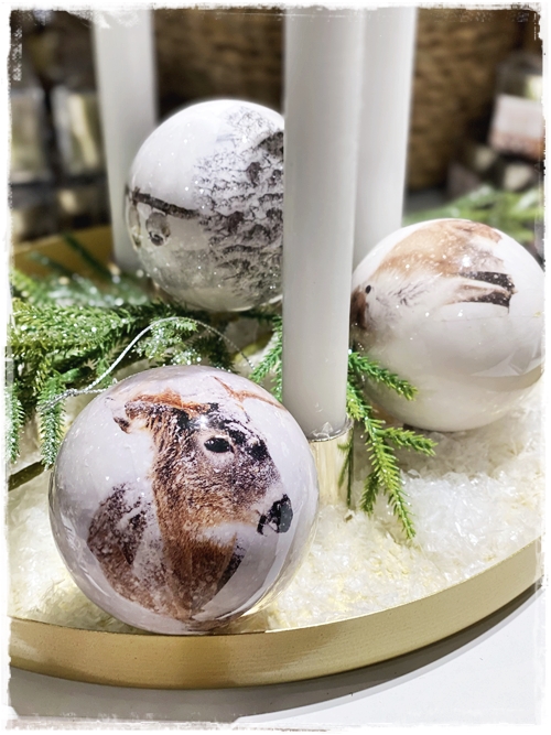 …þessar jólakúlur fannst mér hreint geggjaðar, svo fallegar og æðislegar svona á bakka – stundum þarf ekki meira…