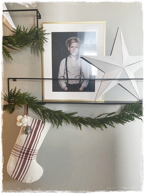 …mér finnst líka gaman að hafa bara með myndarammana sem eru þarna alla jafna, þannig að þetta er bara frekar einfalt – en að mínu mati svo fallegt…