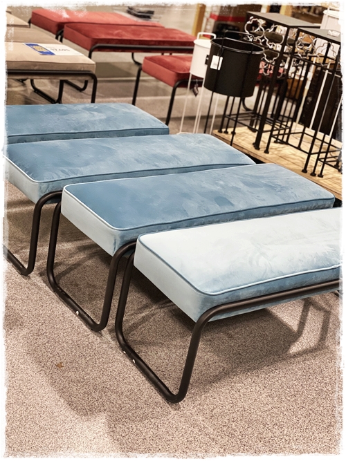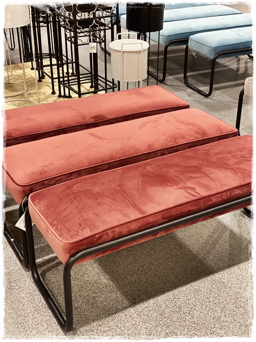 …svo fallegir bekkir – velúr og mjúkir – og í fallegu litum. Þessir gætu verið flottir í svefnherbergið eða forstofuna, eða bara hvar sem er…