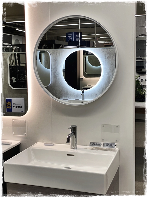 …hvort sem ljósið er á bakið spegilinn eða byggt inn í hann eins og hér – svo er hér önnur falleg innrétting…
