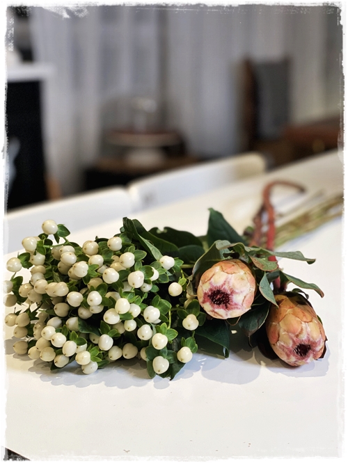 …ég fékk með mér blóm heim til þess að raða saman í vasa, svona í “gjöf” fyrir eiginmanninn – þó ég verði fullkomlega að játa að þetta gleður mig tölvuvert meira en hann 🙂
