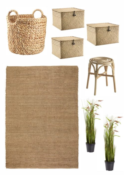 …þið sjáið hérna yfir rýmið, en þetta er svona bland í poka: mjúkt á móti hörðu, og svo auðvitað smá bast með…