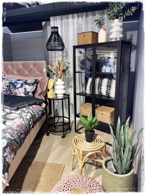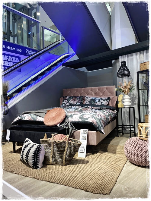 …nú er fermingaraldan á leiðinni yfir landann og því mikið af pælingum um fermingargjafir og allt sem þessu tengist. Ég var í Rúmfó á Bíldshöfðanum og setti upp svona smá svefnherbergi á pallinum þar. Pælingin var svoldið að þetta gæti verið rými sem myndi henta unglingi og gæti auðveldlega dugað í góðan tíma.
