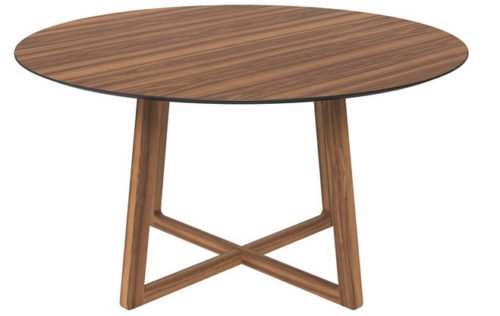 …við ljósa litinn kæmi svo fallega út að vera með viðarborðstofuborð, og þetta hnotuborð væri pörfekt…