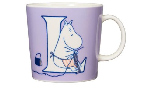 Hér er Múmínmamma á bollanum L en aðrir íbúar Múmíndals sem prýða fyrstu bollana eru Múmínsnáði (O), Fuddler (V), Mímla (E), Snabbi (H) og Þöngull & Þrasi (M). Myndskreytingarnar eru byggðar á handgerðu teikningunum sem finnast meðal annars í Múmínbókum og kortum Tove Jansson.