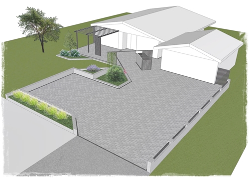 …svona til þess að átta sig betur á þá sést hérna yfir planið, séð frá bílskúr…