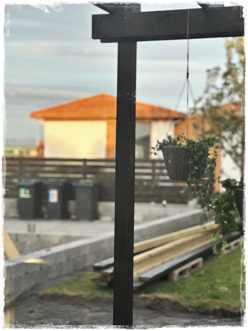 ….þegar við fórum í framkvæmdirnar utanhús fyrir tveimur árum, þá var algjörlega eitt af “stóru” málunum hvar við ætluðum að hafa sorptunnurnar. Sem þá voru reyndar bara tvær, en hafði fjölgað yfir í þrjár þegar að framkvæmdir höfðust. Eins og þið sjáið hérna þá voru þær alltaf bara staðsettar upp við húsvegg, ekkert sérlega fagurt og ávalt sýnilegar sem var mjög leiðinlegt að mínu mati…