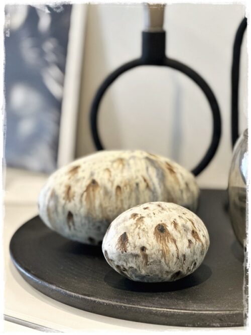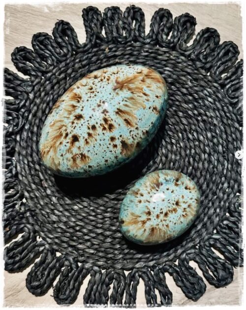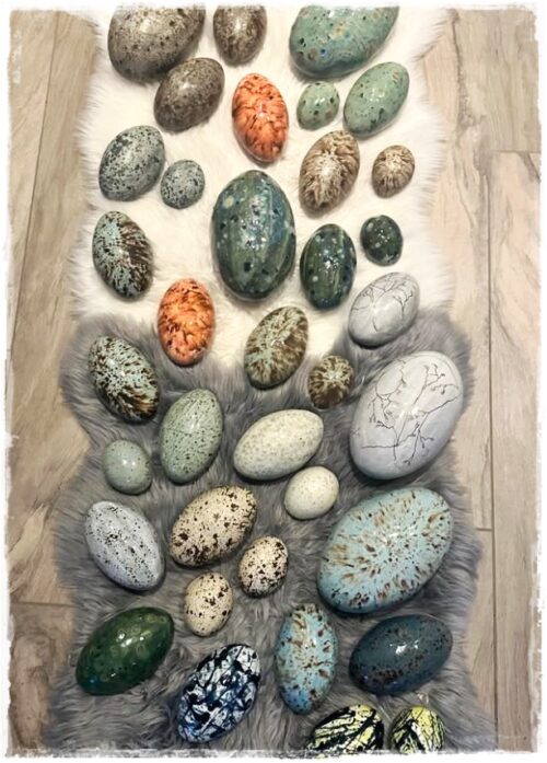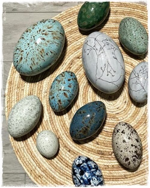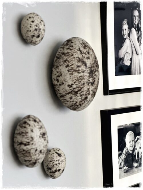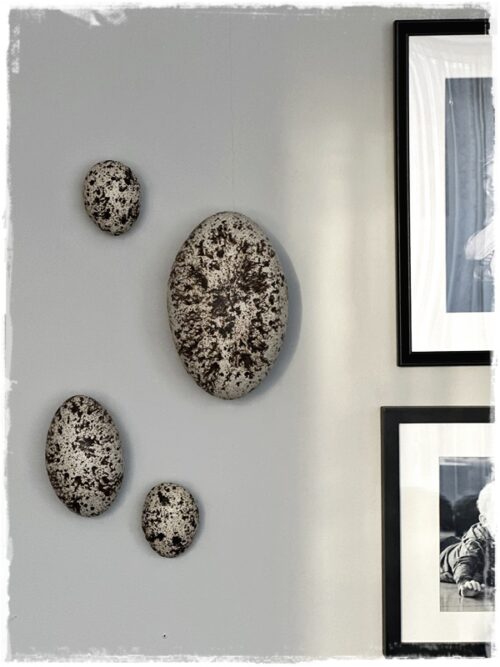Ég sá veggeggin sem hún gerir í fyrsta sinn í vetur og þau heilluðu mig alveg, þannig að ég mælti mér mót við hana og keypti egg til gjafa og átti í mestum vandræðum með að velja á milli…
