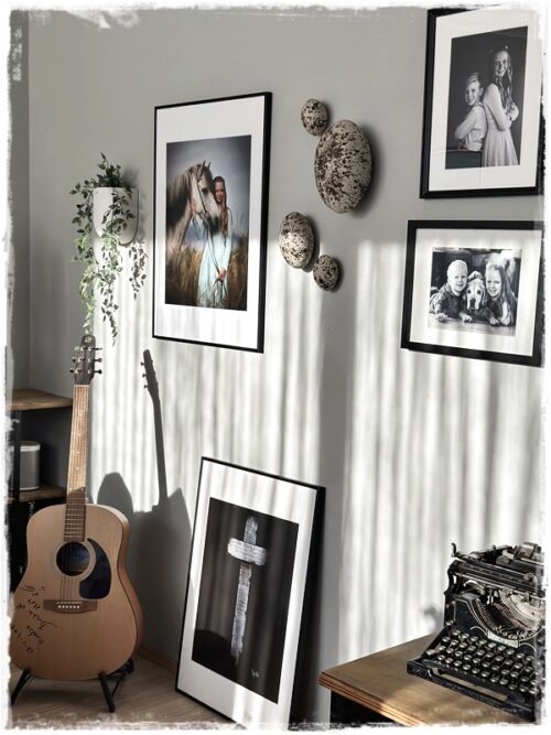 …og þau eru komin rakleitt upp á vegg inni í stofu, en mér finnst þau alveg geggjuð svona saman…