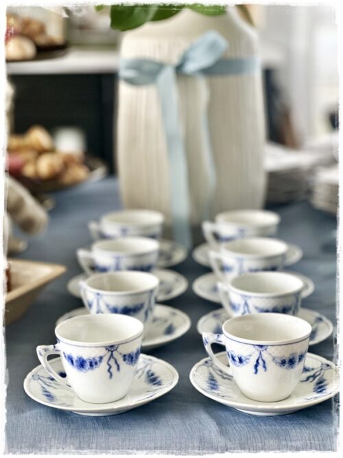 …notaði gamla B&G kaffistellið mitt og svo setti ég slaufur á bæði glösin á fæti og vasann…