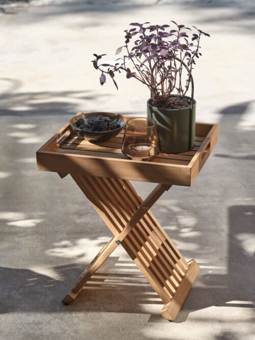 …á minni svalir og palla þá er snilld að fá sér bara fallega stóla og huggulegt borð, þessi hérna bakkaborð eru svo falleg. Svo er einfaldast í heimi að geyma þau og þú ert bara með bakkann á stofuborðinu yfir veturinn…