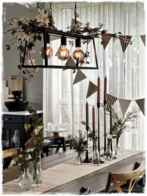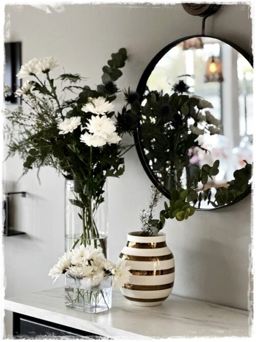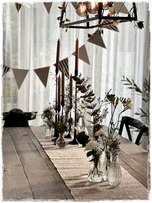 …ein af mínum eftirlætistilfinningum er eftirveislulíðan! Ef þið þekkið þetta þá eruð þið í mínu liði. Það er sko, þegar maður er nýbúin að halda veislu, eitthvað sem hefur staðið lengi til og mikið af planeringum farið í. Síðan ertu á haus í veislunni, fæða fólk og hitta, og svo – svo er þetta bara yfirstaðið. Þá er húsið sprungið oftast og allt út um allt, þá fer ég beint í að laga allt til og ganga frá og eftirleikurinn er hreint hús – með blómum og afgöngum – það verður ekkert mikið betra en það sko!