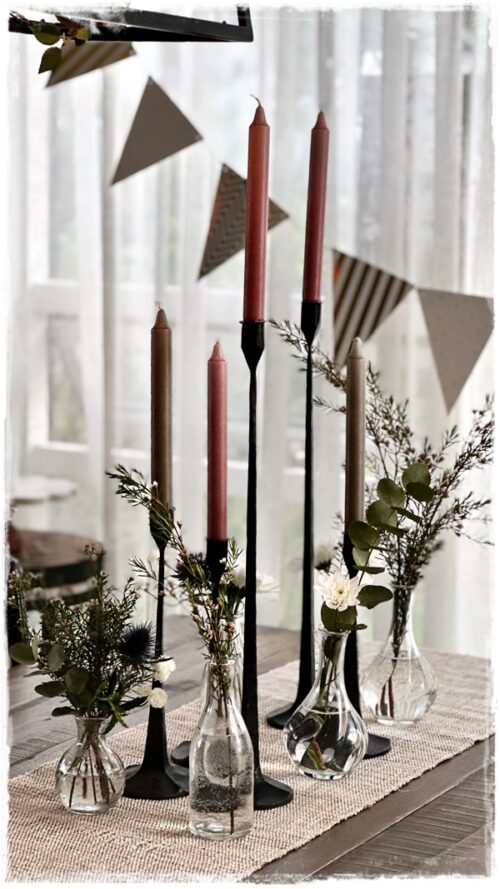 …algjörlega óbrennd kerti, því eins og í góðri veislu að sumarlagi – þá gleymdi ég að sjálfsögðu að kveikja á kertum…