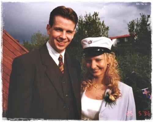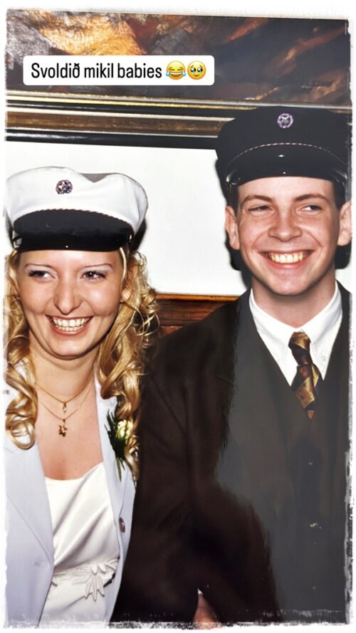 …allt þetta stúdentabras vakti líka upp minningu um aðra stúdentaveislu fyrir örfáum ( *hóst* 29 árum) en þá voru þessi tvö agalega ung og fersk, núna erum við bara fersk…