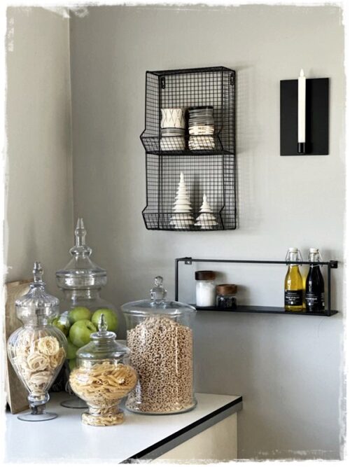 …ég sá síðan þessar tvær týpur í netverslun Söstrene, þær eru svona svipaðar ef einhver er að leita – og það góða við svona vírhillur er að það er súper einfalt að spreyja þær í hvaða lit sem hentar…