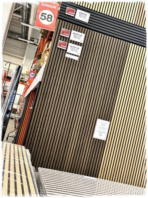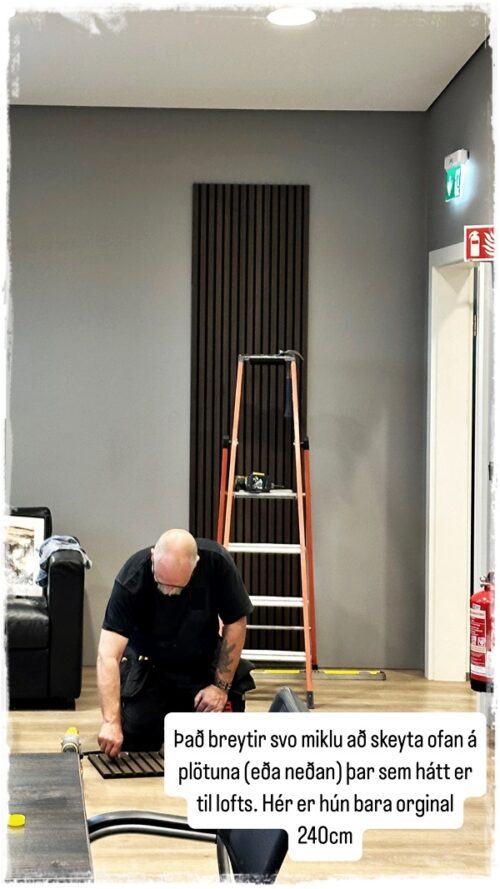…og að lokum einn panill þarna við hurðina. Lofthæðin var það mikil að við þurftum að skeyta ofan á plöturnar, og það breytti svo miklu, eins og þið sjáið hérna…