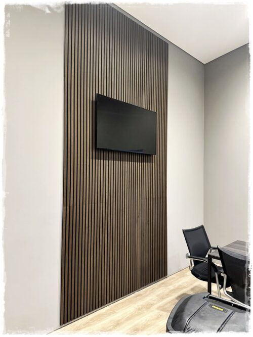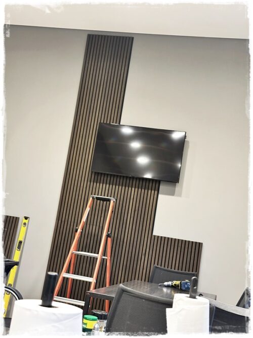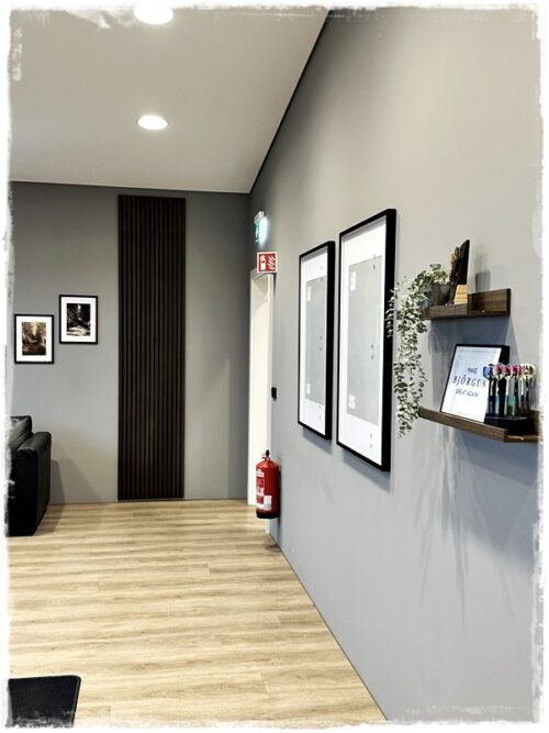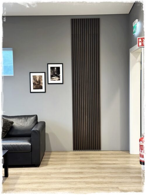 …hérna er séð inn rýmið, og áður var auðvitað ekkert á endaveggnum – en að setja panila þar – sem að voru settir þannig að ljósin hitta einmitt á miðjan panilinn og njóta sín enn betur…