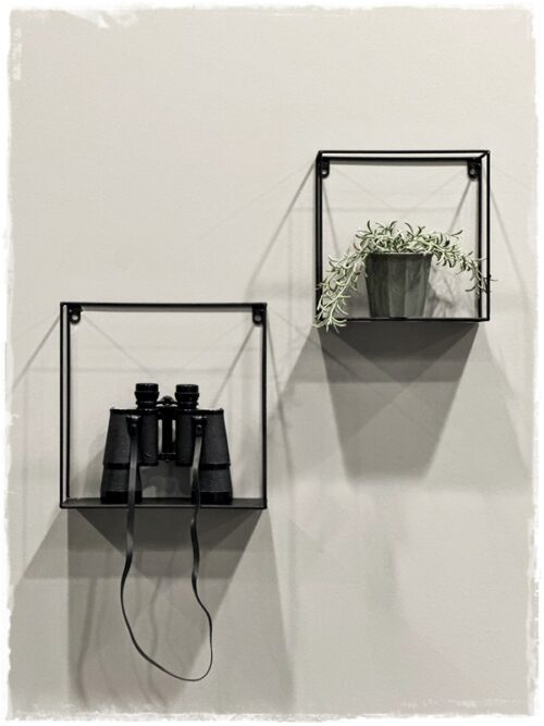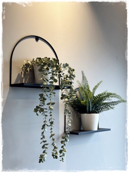 …veggurinn á móti fékk tvær hillur, fyrir pílurnar og blóm – og tvo stóra ramma sem á eftir að finna myndir í …