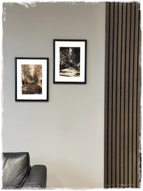 …mér fannst besta leiðin til þess að ná inn hlýleika væri að nota viðarpanila og ég fann þessar í reyktri eik, sem var svo fallegur, djúpur og hlýr litatónn á…