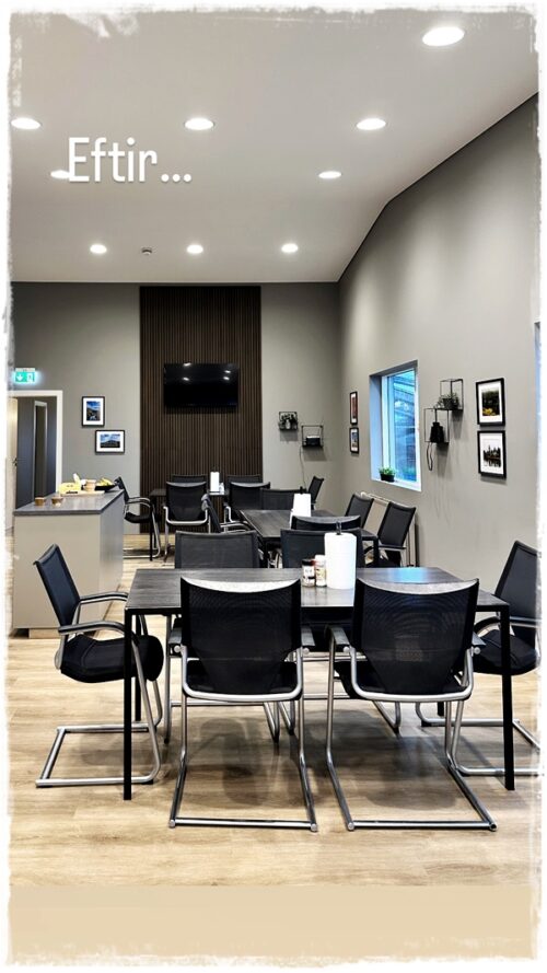 …þetta verkefni tók nokkur kvöld hjá okkur Sigga og það var gaman að heyra hversu ánægðir starfsmennirnir voru með þessa breytingu, en þeim fannst allt verða svo mikið hlýlegra og færðu sjálfir til ruslatunnur og annað til að gera huggulegra. Geggjað! Skemmtilegt verkefni og frábærum félagsskap Sigga, get ekki beðið um meira ♥