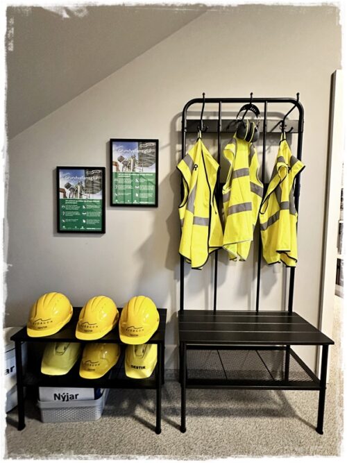 …það vantaði einhvern stað fyrir hjálma og vesti og úr því var bætt…