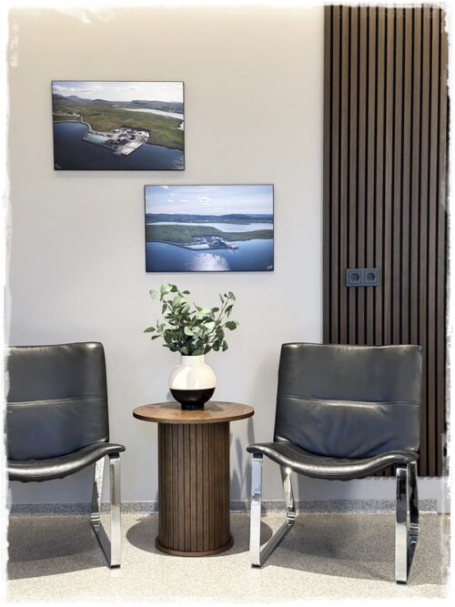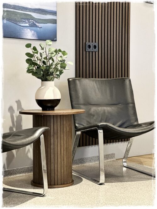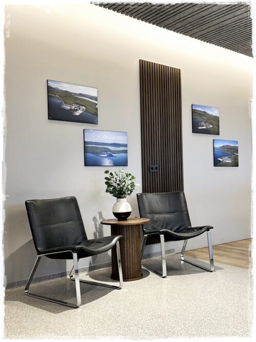 …ég var að vinna svo skemmtilegt verkefni um daginn. En Björgun er með nýlegt skrifstofuhúsnæði, sem var ennþá frekar hrátt og þeim langaði að gera það hlýlegra og huggulegra fyrir þá sem starfa þarna. Við vildum auðvitað ekki hafa þetta neitt “of mikið dúllerí” þar sem þetta er vinnustaður þar sem eingöngu herramenn starfa, eins og er, og þetta snerist bara um að ná inn smá hlýleika og kózýfíling. Auk þess að við lögðum áherslu á að endurnýta sem flest og vinna þetta með endurvinnslu sjónarmiði…