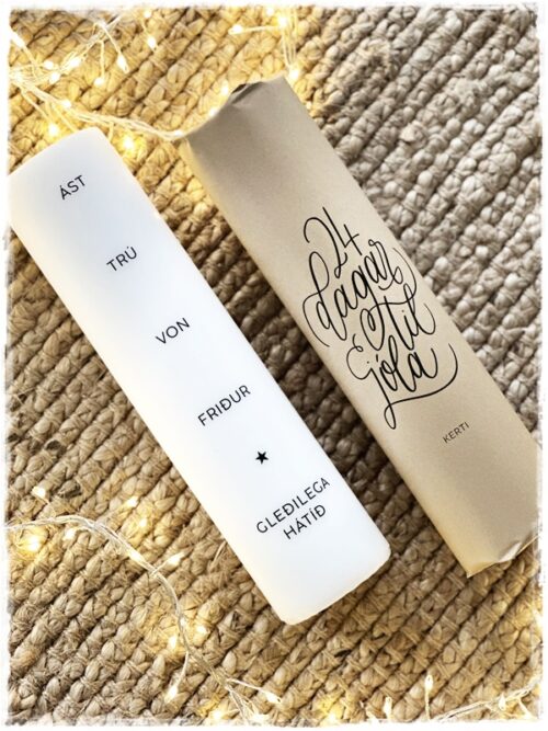 …það er búið að vera hefð hjá mér núna í nokkur ár að fá mér fallega dagatalskertið frá henni Vaiva hjá Vast.is. Í fyrra voru aðstæður þannig að hún gaf ekki út kertið sitt og ég saknaði þess virkilega og gladdist því mjög þegar hún lét mig vita að það væri væntanlegt í ár, og ekki bara eitt dagatalskerti heldur tvö, en auk 24 dagar til jóla þá er líka kertið Friðar jól…
