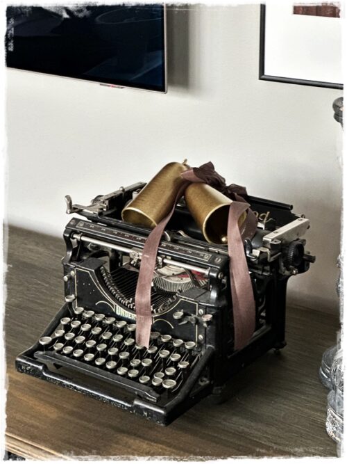 …síðan setti ég líka bjöllur hérna á gömlu ritvélina, nú sé ég að mig bráðvantar að fara að sækja grenið…