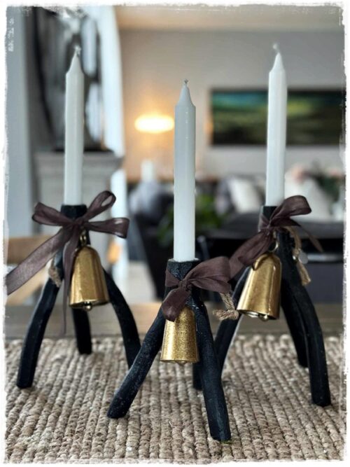 …hér eru bæði bjöllur og stjakarnir úr Höllinni, en skiljanlega eru stjaarnir alls ekki bara fyrir jólin – ég er með þá allt árið og elska þá sko…