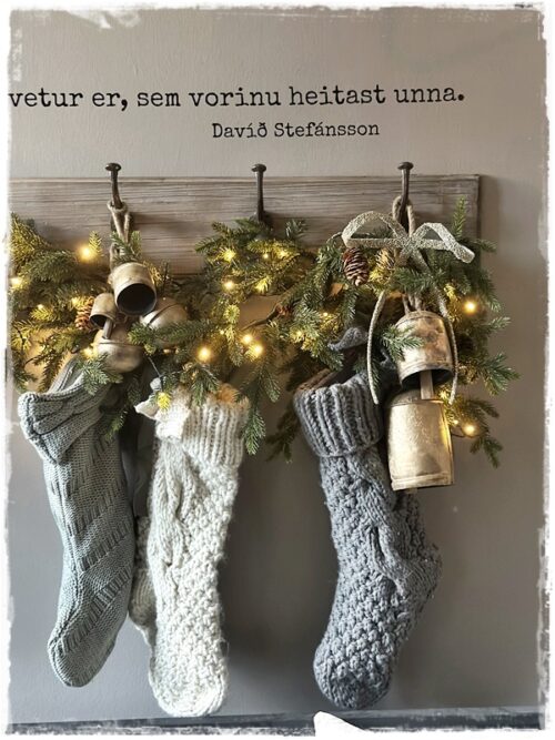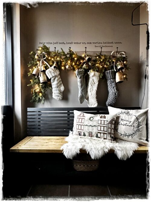 …er svona það sem tekur fyrst á móti fólki, eftir að hafa gengið í gegnum “jólalandið” fyrir utan hús. Ég get svo sem ekki sagt að ég sé að finna upp hjólið hérna, hef skreytt hana á svipaðan máta lengi en mér þykir þetta alltaf jafn fallegt…