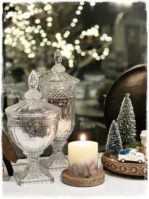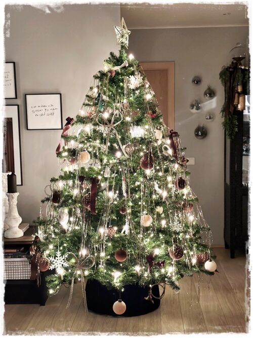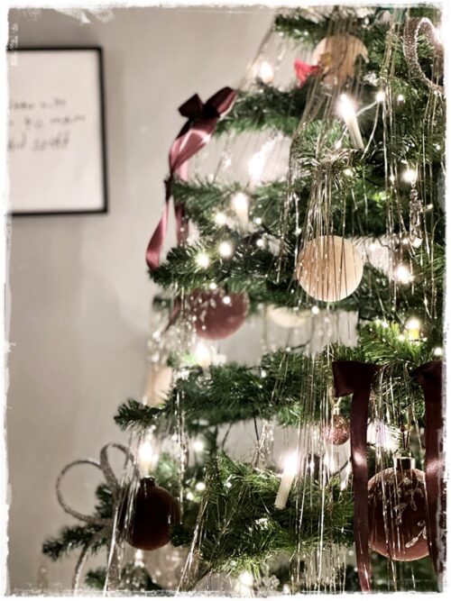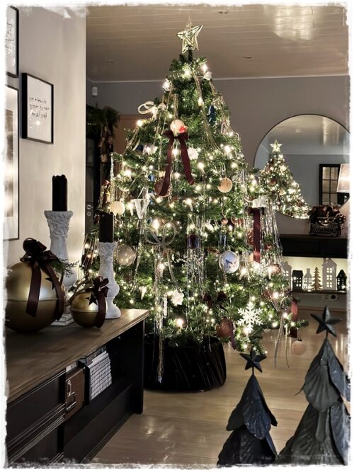 …og jólatréð fékk í fyrsta sinn í mörg ár smá yfirhalningu, en ég verslði einmitt brúnar velúrkúlur í Magnolia heimsókninni minni í febrúar, og þær voru svona stór hluti af ástæðunni að brúnn varð í aðalhlutverki…