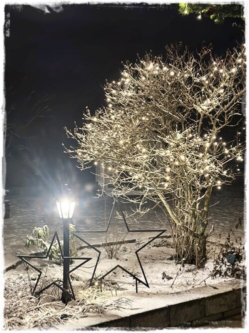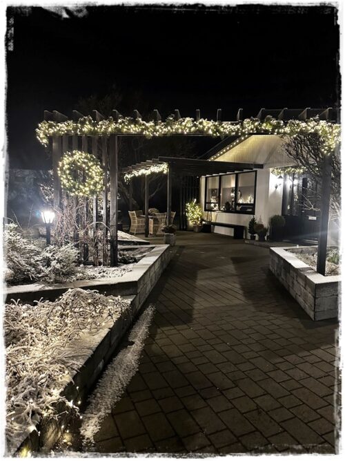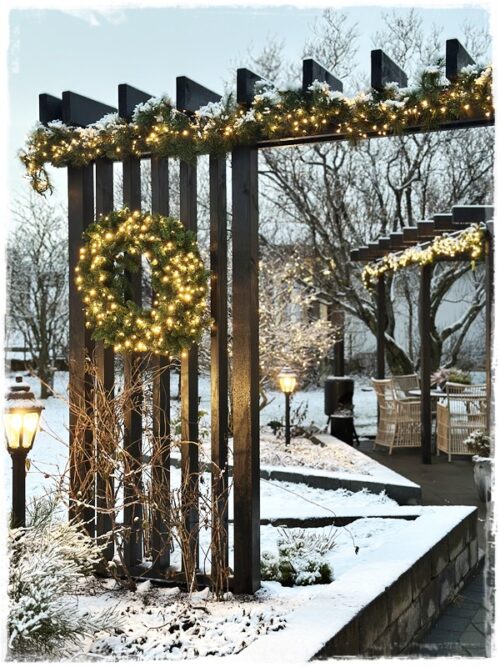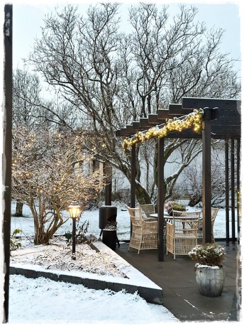 …að sjálfsögðu er allt komið í fullan skrúða fyrir framan hús, og var enn fallegra núna þegar snjórinn var yfir líka…
