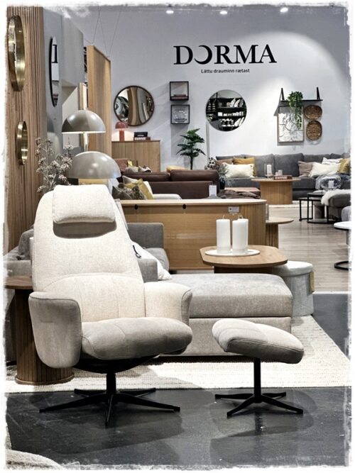 …byrja þetta samt á Albi hægindastólnum því hann er bara svo einstaklega fallegur. Hann er núna með 25% afslætti og skemillinn fylgir. Ég er að elska að hann er ekkert mjög fyrirferðamikill, og hann passar með svo mörgum stílum og litum þar sem hann er svona ljós og hlutlausari – hægt er að halla bakinu til þess að gera hann enn þægilegri og hann er á snúningsfæti…