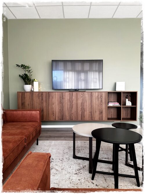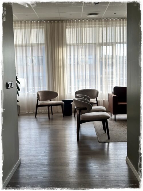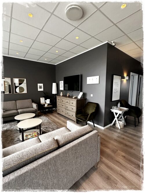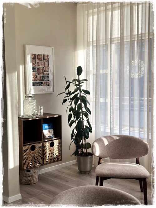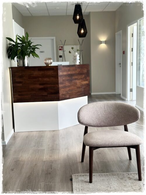 …eru staðsett í Hlíðarsmára og þar eru þau með þjónustu fyrir barnshafandi konur, sónarskoðanir, auk þess að vera með meðgöngunudd sem og almennt nudd. Meðal þess sem boðið er upp á eru námskeið fyrir pör. Hún Elín sem er eigandi hafði samband við mig í fyrra og bað mig að aðstoða við uppfærslu á rýminu þeirra. Mála og gera enn hlýlegra og uppfæra þau húsgögn sem voru komin á tíma.