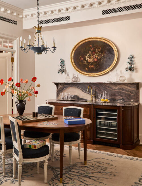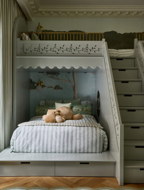 „Það sem skiptir Zooey og mig mestu máli er að rými segi sögu og endurspegli raunverulega eigendur þess,“ segir Jonathan. „Við höfum ekki gaman af leiðindum. Við vildum að allt, frá sérsmíðuðum húsgögnum til veggfóðurs og lýsingar, þætti einstakt.“