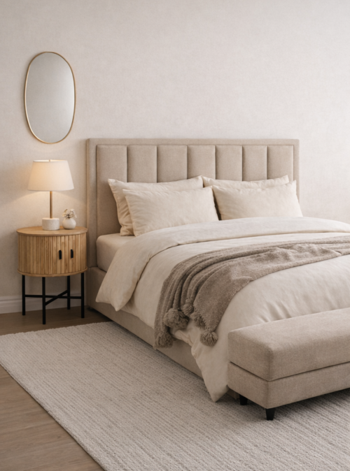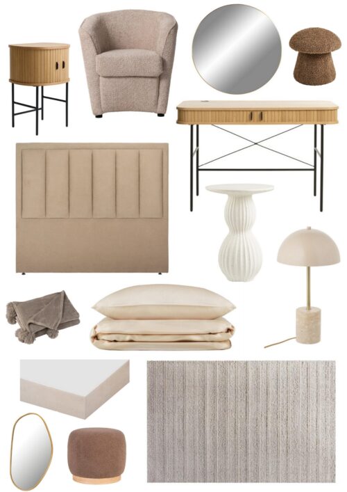 …moodboard þar sem týnt er saman í herbergi, sem gæti hentað þeim sem vilja mjúka og rólega stemmingu, svona neutral palletta…