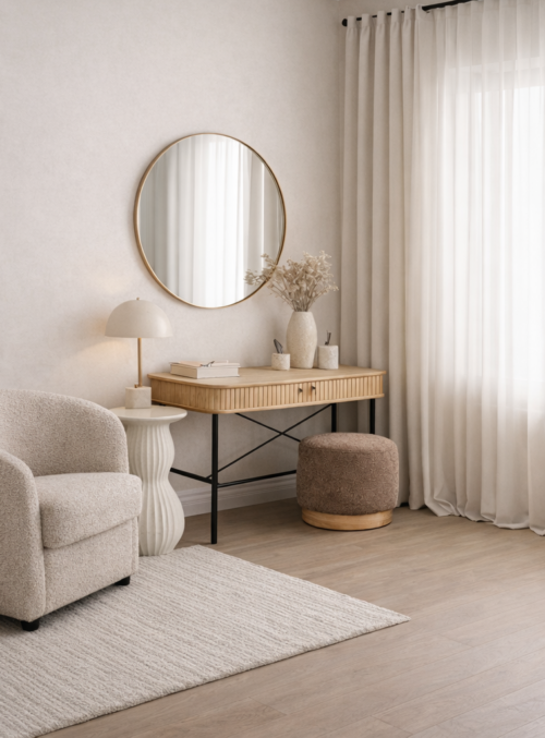 …hér fékk ég síðan gervigreindina til þess að útbúa smá herbergi úr moodboard-inu, svona til að auðveld ykkur að sjá þetta fyrir ykkur!
