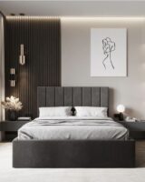 …ég var að skoða alls konar hugmyndir sem viðkoma viðarpanilum, svona hljóðvistarplötum sem fást t.d. í Bauhaus og víðar. Það eru margir sem hafa sett þær á heila veggi, bæði í svefnherbergjum og í sjónvarpsrýmum. En hér koma nokkra hugmyndir…
