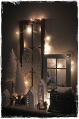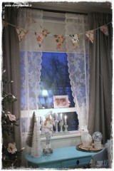 …og jólin eru komin upp í herbergi dömunnar. Henni til mikillar gleði – svo mikið er víst 🙂 Eigum við að kíkja aðeins inn? …í glugganum stendur aðventuljósið sem ég bjó til handa henni í fyrra (sjá hér)… …svo sem…