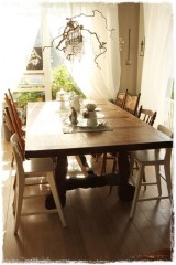 …en maður gæti spurt sig: Hvers vegna í ósköpunum að setja upp ömmustöng fyrir ofan eldhúsgluggann, án þess að ætla að hengja nokkrar gardýnur í hann! Svarið er einfaldlega: til þess að geta skreytt gluggann meira! 🙂 Jebbs, ég er klikkhaus.…