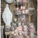 …því að fáar búðir eru með jafnmikið af páskakrúttli, eða bara krúttli, yfir höfuð. …þarna ætlaði ég að mynda bleiku hænurnar með toppunum, en lét glepjast af þessari dásemdar ljósakrónu… …sjáið bara fallegu litina, og fallega litinn! …það er um…