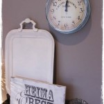 …hver man eftir þessu úr Skaupinu, 86???? Þessi klukka var hins vegar ekki klikkuð, en hún fékkst í Rúmfó og kostaði undir 700kr… …og ákvað að breyta henni smá og notaði bláa málningu frá Martha Stewart… …og þá leit hún…