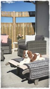 …jæja pallurinn!  Þetta ber ekki á sig sjálft sko, neinei – ég fæ bara eiginmanninn í það 😉 …eins og sést á þessari mynd þá er dekkið á pallinum ljósara en veggirnir – enda er það búið að veðrast í…