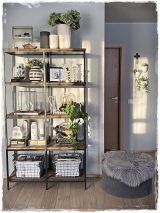 …þegar ég var búin að mála bekkinn, og búin að setja klukkuskápinn nýja/gamla á hilluna, þá lagðist ég á legubekkinn okkar til þess að slappa aðeins af. Þar sem ég lá og slappaði af, og starði á hilluna okkar –…